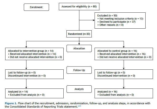 METHODS Study design, setting, and participants This was a single-center RCT conducted at the Federal University of Rio de Janeiro—located in the city of Rio de Janeiro, Brazil—in collaboration with the Istituti Clinici Scientifici Maugeri—a referral center in the city of Tradate, Italy—which supported the study design and statistical analysis, following the guidelines established in the Consolidated Standards of Reporting Trials statement.(17)