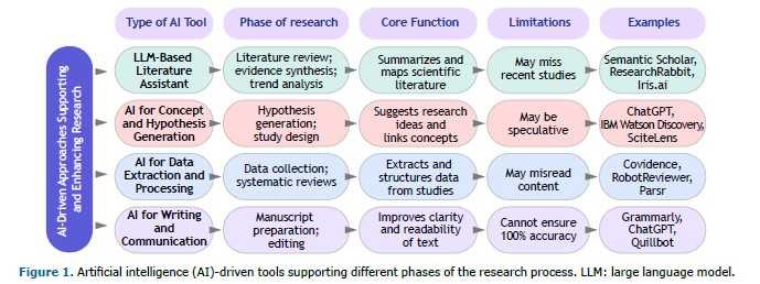 AI has already transformed research by streamlining literature searches, supporting data analysis, enhancing quality control, and improving manuscript preparation, particularly for non-native English speakers. However, AI should be regarded as a support tool rather than a substitute for scientific judgment or a co-author. Final decisions and interpretations must always rest with the researcher. By combining AI’s capabilities with human expertise and adhering to ethical guidelines, investigators can harness its strengths while safeguarding research integrity and reproducibility.
