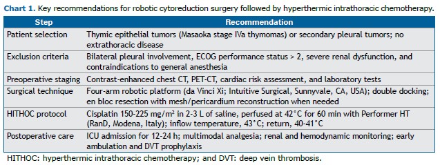 Although most experiences with HITHOC involve open approaches, the combined use of robot-assisted thoracic surgery and HITHOC remains underreported. Robotic platforms provide enhanced visualization, superior instrument articulation, and improved access to pleural recesses. Here, we describe a standardized, step-by-step protocol for robotic CRS followed by HITHOC, implemented at a high-volume thoracic oncology center in Latin America.