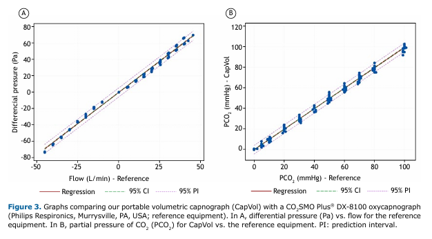 The validation of the CO2 sensor showed an R2 = 0.995 (95% CI, 0.994-0.996), confirming equivalence with the reference equipment.